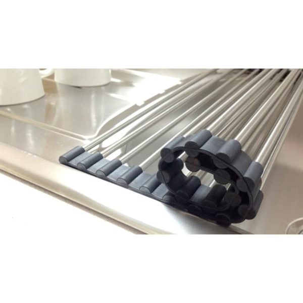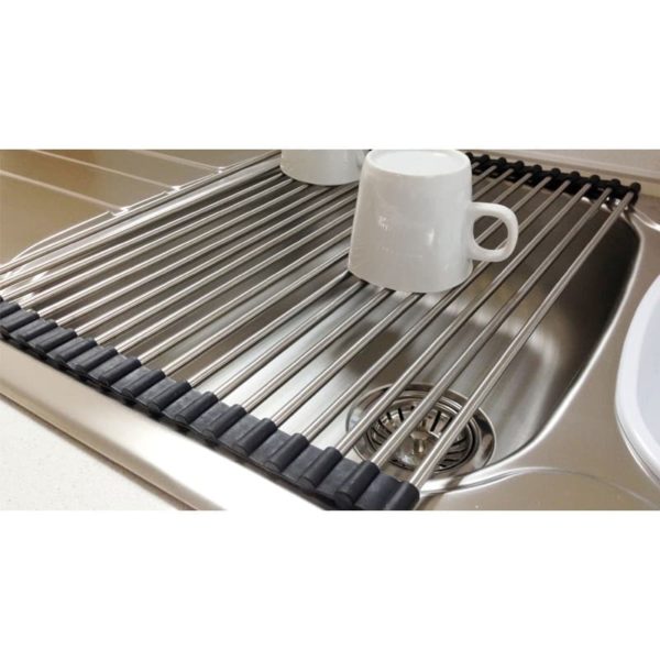 Easily make more space for draining with this Stainless Steel Folding Dish Mat.