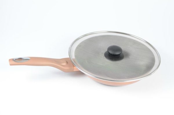 Tags: food cover, keep kitchen clean, metal splatter cover, splatter cover with plastic handle