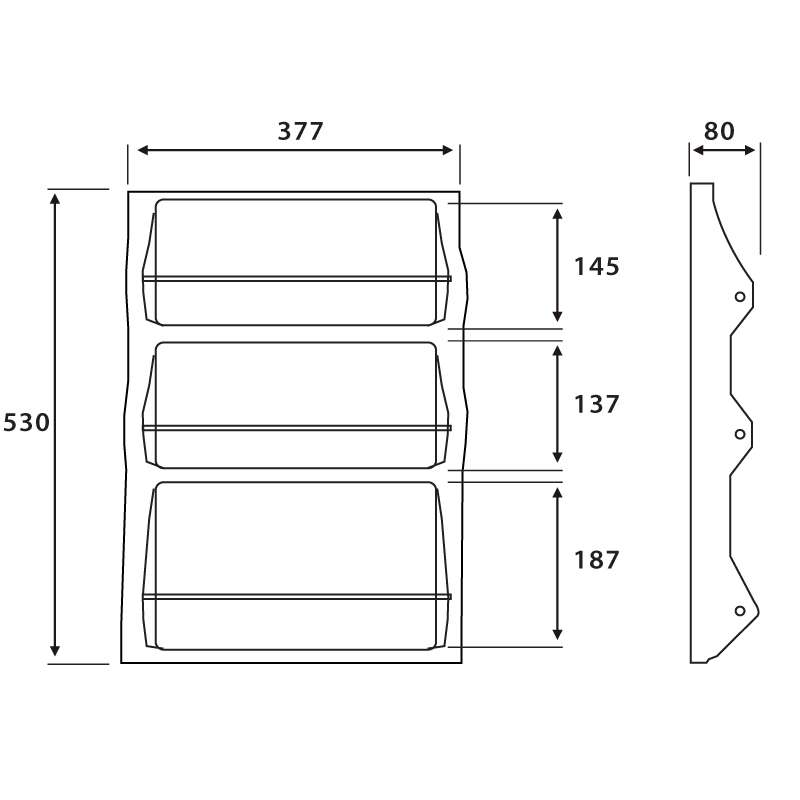 Plastic Molded Spice Rack measures 53cm x 37,7cm wide x 8cm deep.